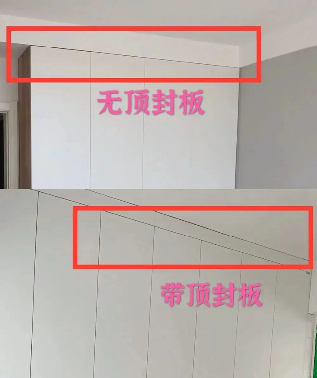但为了让柜子尽可能地做到严丝合缝,不影响美观的话,一般柜子的上方都会加一块顶封板。