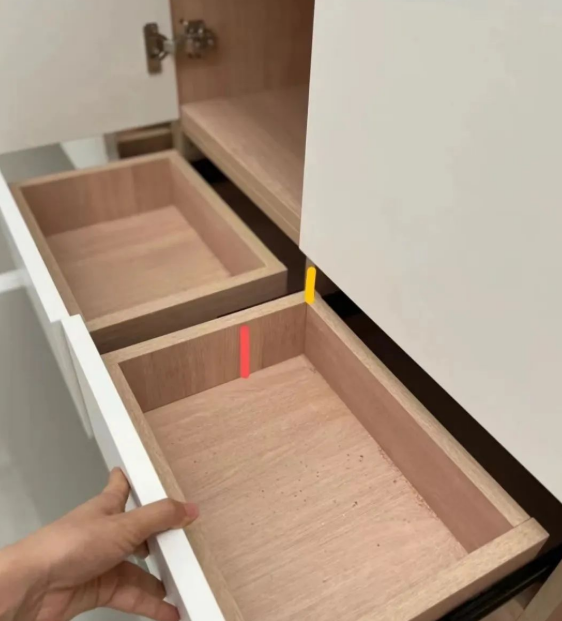 很多人不知道什么是见光板?其实,就是柜子暴露在视线范围内的侧封板和底板。