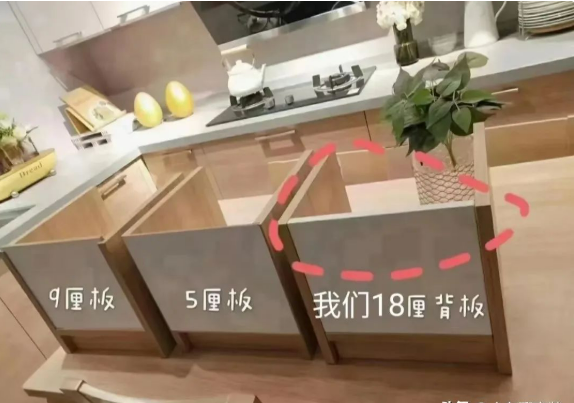 大家都知道,正规的背板要做到9毫米以上,才能维持柜子的稳定性。